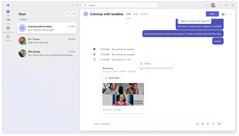 The call and meeting recording feature is now available for Microsoft 365 Personal or Microsoft 365 Family subscribers in Teams, making it simple to capture and revisit your calls and meetings. Recording call and meetings in Teams ensures you never miss critical details – whether for compliance, collaboration, or catching up later. With just one click, you can record your session and access it securely in the cloud for up to 30 days.